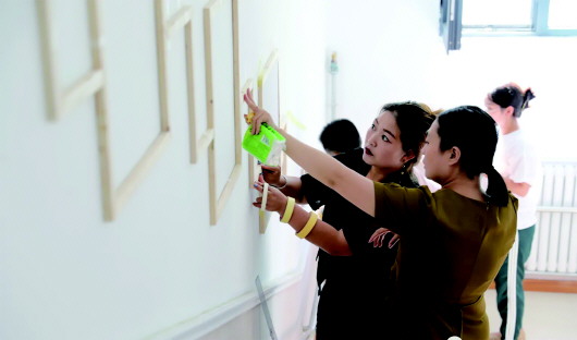 开园在即,秦安县第三幼儿园全体教师放弃暑假休息时间,正在紧锣密鼓、加班加点地对新建的北苑分园进行环境美化布置。