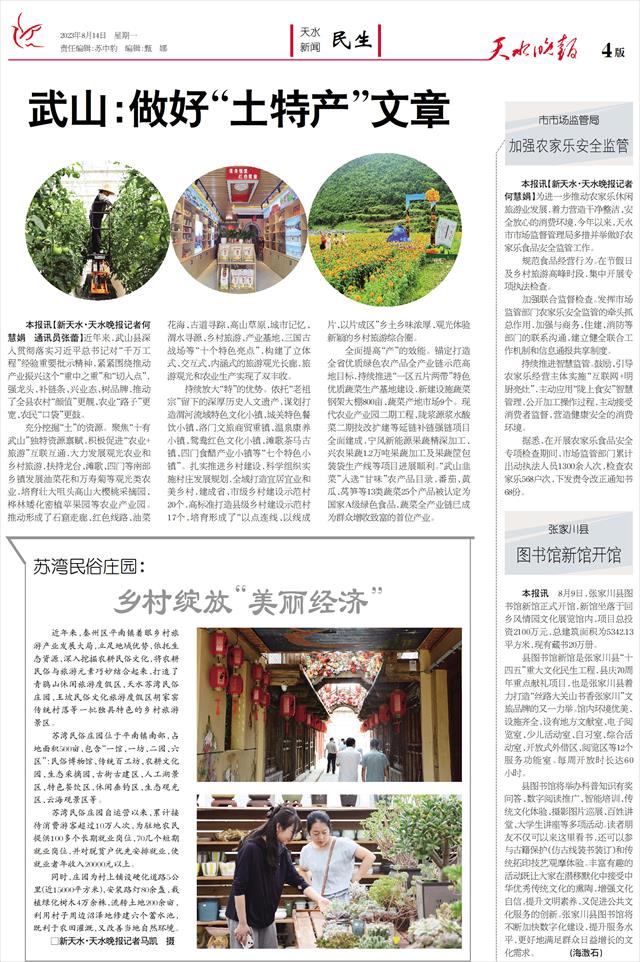 全媒体指挥中心(报料):8212608 新天水网网址:www.tsrb.com.cn 天气:晴 气温:19—32℃ 责任编辑:苏中豹 编辑:甄 娜 武山: 做好“土特产”文章