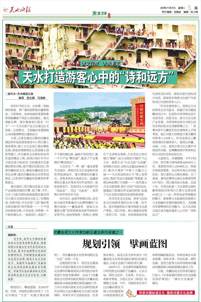 规划先行,擘画蓝图。在2022年初,市委、市政府办联合印发了《天水市建设“五区”实施方案的通知》,而伏羲始祖文化传承创新区是“五区”的第一个区。