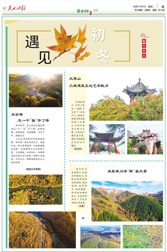 初冬时节的天水,亦有着一种独特的美感。那广袤的原野依旧叠翠流金、五彩缤纷,如诗如画的美景和像珍珠般镶嵌于两区五县的景区、景点相映生辉,吸引着游客们前来“打卡”——天水文旅产业正在通过以文促旅、以旅彰文,文旅融合泼墨陇原山水的豪情释放出蓬勃活力。