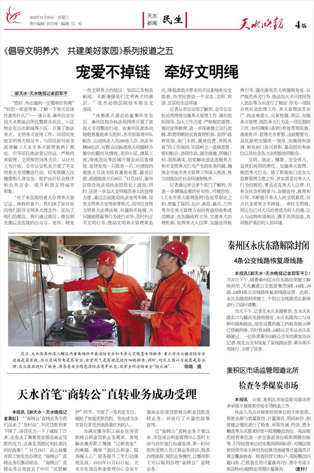 《倡导文明养犬 共建美好家园》系列报道之五 宠爱不掉链 牵好文明绳   □新天水·天水晚报记者蔚军平