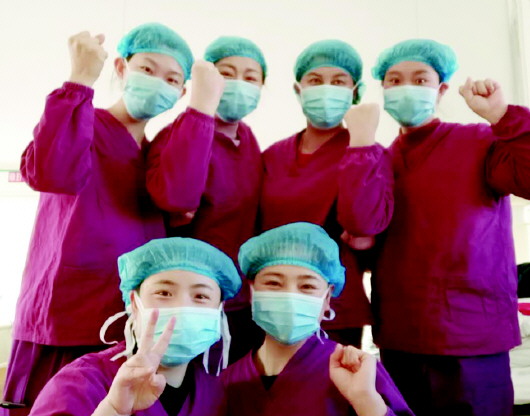 2020年1月23日,第一例留观者入院,所有医护人员进入临战状态。在没有硝烟的战场上,她们与病魔站成了零距离;危难时刻,她们选择了请战逆行。疫情当头,年轻的护士毅然取消婚礼,主动申请加入到一线传染病房,连续奋战20多天;资深的护士长舍小家为大家,在传染病区心无旁骛悉心护理确诊患者……面对与病毒零距离的接触,她们内心也充满恐惧,但却彼此用行动互相鼓励着。2月12日,与她们并肩战斗的患者治愈出院了,严峻的疫情防控形势却容不得她们放松警惕,稍作休整,她们又投入到新的战斗。因橡胶手套、消毒液和洗手液反复侵蚀,导致双手她们皮肤受损。为了节约宝贵的防护用品,护理人员12个小时内不吃不喝,如小孩子般穿上纸尿裤,导致有的人泌尿系感染……2月16日,100余名医生护士发出“疫情当前,我愿为卒,绝不后退一步”的誓言,申请支援湖北!