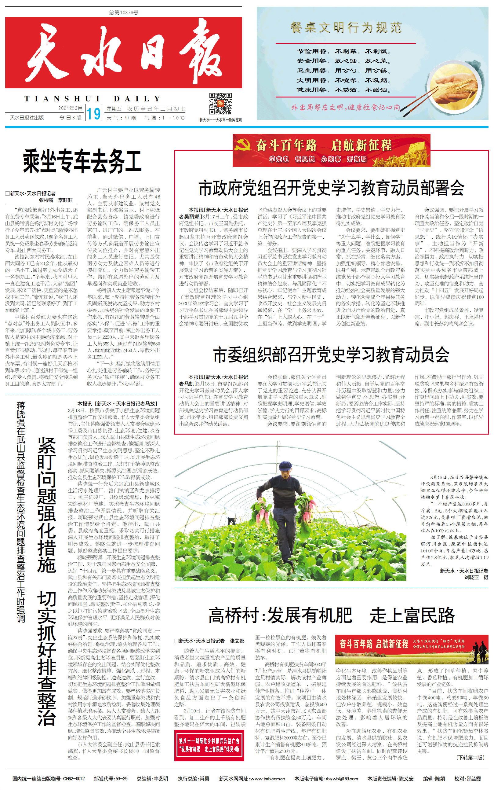 本报讯【新天水·天水日报记者马凯】3月18日,市委组织部召开党史学习教育动员会,深入学习习近平总书记在党史学习教育动员大会上的重要讲话精神,对部机关党史学习教育进行动员部署。市委常委、组织部部长贾义翔出席会议并作动员讲话。