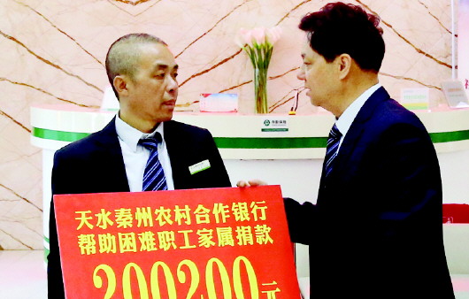 本报讯 近日,秦州农村合作银行组织全体职工为患白血病的员工家属开展了爱心捐款活动。