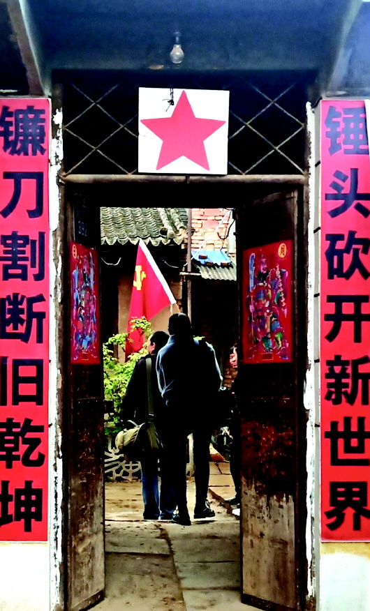 初夏时节,记者来到武山县鸳鸯镇颉家门村,走进一处极具特色的小院,门框上贴着一副醒目的对联,红底黑字写着“锤头砍开新世界 镰刀割断旧乾坤”,门楣上方大红色五角星熠熠生辉。这是颉家门村村民颉海娃家,这个不起眼的小院,就是武山县苏维埃政府旧址。2002年8月1日,武山县政府在该院挂起“武山县苏维埃政府”铜牌一面。