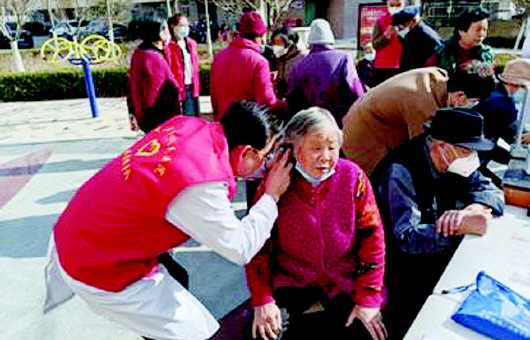 医务人员为社区居民宣传讲解听力保护方法以及耳部疾病相关预防知识,开展日常用药指导,耐心细致地为前来就诊的群众开展常见病、多发病的诊疗服务,并为就诊人群免费发放常用药品。 王峰 摄