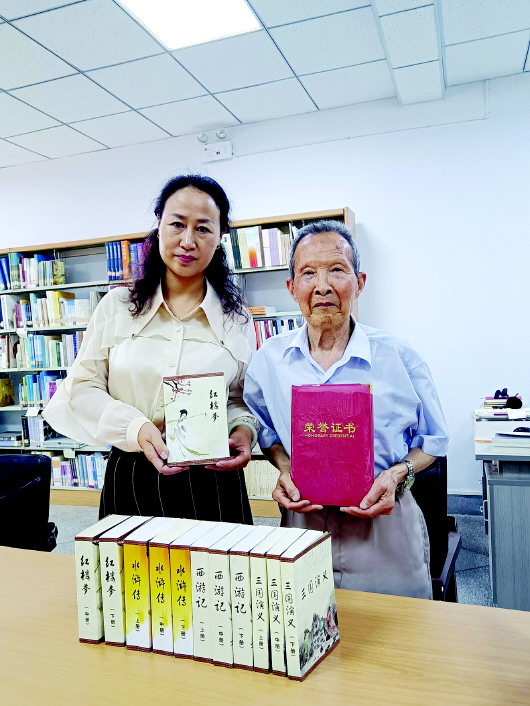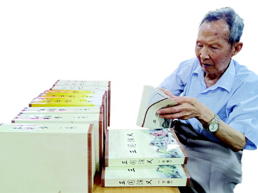 □新天水·天水日报记者 徐媛 今年6月,天水市图书馆收到一份特殊的“礼物”——12册装订成册的四大名著手抄本,捐赠人是一位名叫何士魁的老人。 随意翻开那一本本装帧精美,重达20斤的书籍,你都会发现无论是楷书、隶书还是篆书,其字迹工整、书写整齐、用笔讲究,字里行间都透露着老人深厚的书法功底和一丝不苟的执着。 在退休之后的前十年时间里,何士魁每天都坚持抄写四大名著,从不间断。更让人称奇的是,这些书的所有制作工序全部都由他自己亲手完成,从选纸、抄写、注释,再到装订,老人全部都是亲力亲为。 何士魁老人以前便非常喜欢书法,但几十余载教书育人,留给他练习书法的时间并不宽裕。直到退休赋闲在家,他才安心书写,开始自己心中的宏大愿望。 1996年,已至花甲之年的何士魁拿起毛笔开始抄写四大名著。谈及最初为何会想到手抄四大名著,何士魁回忆道:“我这个人好安静,不爱玩牌、打麻将。退休后,我就想充分利用时间好好练练字,但练来练去总感觉枯燥无味,于是突发奇想,在延安时毛主席也是边打仗、边学习,我为啥不能边抄书、边练习呢?” 谈及为何把抄写目标锁定在四大名著时,何士魁笑着说:“上中学时,我在学校图书馆翻看过四大名著的连环画,觉得非常有意思。况且,作为中华民族古典文学的瑰宝,四大名著最初也都是以手抄本的形式流传于世的。” “开始抄书的时候,感觉特别充实,每天的时间几乎都排得满满的,一般早上七点到八点,十点半到十二点,下午三点到六点,晚上七点到十点都是我的抄书时间,十年如一日,雷打不动。那时,总感觉比上班的人都忙。”何士魁说。 “抄书时,心情通达,感觉不到累。”何士魁对自己非常严苛,只要错一个字,便要重抄。为了做到一字不漏、一字不错,他不求书写速度快,只求标准、正规。有时一个笔画不够标准或写错了,就从头再来。他说:“抄书急不得、烦不得,一笔一画必须要沉下心来,否则就容易出错,字也就乱了章法。” 十年间,何士魁最开始抄写的是《三国演义》,包括注释,整本书的抄写用时最久。看着整整齐齐的手抄本,何士魁喜不自胜,心中满满的都是成就感,这也让他觉得把剩下的三本名著抄写下来问题不大。 在信念和热爱的支撑下,何士魁奋笔疾书,抄完了《水浒传》。 此后,他再接再厉、马不停蹄地抄写下一部名著。在不断抄写的过程中,何士魁也愈发体会到了传统文化的魅力。“四大名著可以说是中国文学史上的四座丰碑,几百年来在海内外经久不衰,它们反映了中国文化的精髓和特点,是传统文化中的重要组成部分。抄写的过程中,我逐渐领略到这些作品在人物形象、叙事手法、情节和哲学思想等方面所具有的深厚文化底蕴,这也是支撑我继续抄下去的动力所在。”何士魁老人说。 许是为验证“眼过千遍,不如手过一遍”的道理,谈话间,何士魁对四大名著中的诗词、名句可谓信手拈来,从中足可见其抄写之认真。 采访中记者了解到,何士魁常被左邻右舍称为“痴老头儿”,而这个称呼的由来不单是因为他十年如一日的坚持抄写,还因为另一项坚持——跑步。 按说跑步也没什么特别之处,但当看到一位八十多岁的老人无论严寒酷暑,每天穿着单薄雷打不动坚持跑步半小时,如此,把他与“痴”联系起来,便也不足为奇了。 但不得不说,也正是这股“痴”劲儿,让何士魁在耄耋之年还依然精神矍铄、耳聪目明。十年心无旁骛地细细揣摩和慢慢钻研之下,老人无师自通,练成了一手好字。他告诉记者,十年手抄四大名著,他竟然还有了意料之外的收获。“当时只一心抄书、练字,没想到这一抄,还抄出个天水市书法家协会会员来……” 抄写完四大名著,何士魁时常会一页页翻看这些手稿。但翻看得多了,他又觉得略显寡淡,于是便让家中擅长绘画的亲戚帮忙插了40余幅插图。“插图在旁,文字更显摇曳生姿,阅读更加饱满愉悦。可以说,插图是吸引我们走进经典的另一条路径。” 亲人们原以为何士魁的“痴”会止步于每天雷打不动跑步半小时,但他的“痴”又不止于此。今年,他在87岁生日来临之际,决意将十年辛苦成果无偿捐赠给天水市图书馆。为此他还特意作了一首打油诗:“四大名著抄十年,我要赠予图书馆。‘女孩’出嫁要打扮,巧逢生日了心愿。” “人生七十古来稀,87岁的生日怎么过才能更有意义?我想,四大名著自己手抄了十年,与其让它在家里蒙尘,还不如赠予图书馆。十年的抄写,这些手抄稿就像是我心爱的女儿,既然打算让她‘出嫁’,就得漂漂亮亮的。于是我又找了印刷公司特意为它们加上了彩色书籍装帧封面,这也算是了却了我的一桩心愿。”何士魁解释说。 “书的最好归宿,是从一个人的阅读变为与全社会分享。”何士魁坦言,捐献图书是中国知识分子的优良传统,将个人藏书转化为社会公用,希望借此服务大众、丰富馆藏、提升价值。每个人都是城市建设者,捐书是一种文化建设,彰显民族美德的同时也传承了文脉。 采访最后,何士魁对记者说:“我打算一直这么跑下去、写下去,跑步锻炼的是身体,抄写锻炼的是头脑。假如手抄传统文学作品能为弘扬传统文化贡献一点微薄之力,我当然会一直坚持下去。”