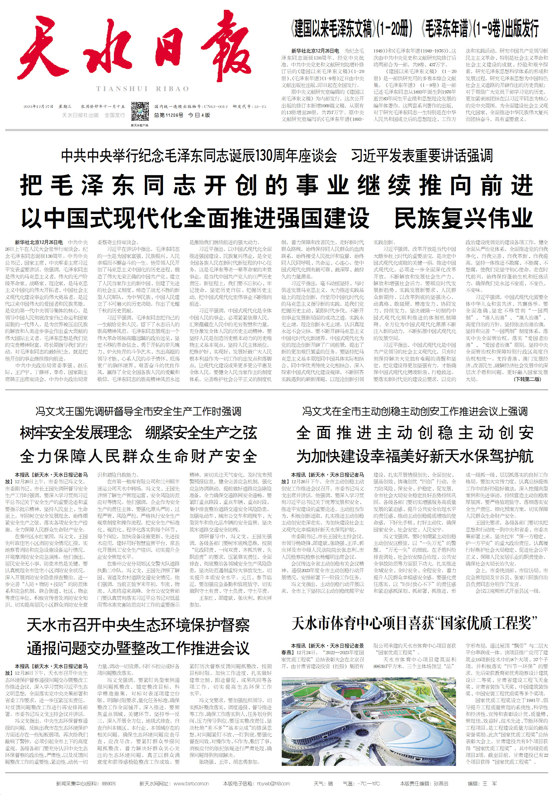 新闻 时间:2023年12月27日 来源:天水日报