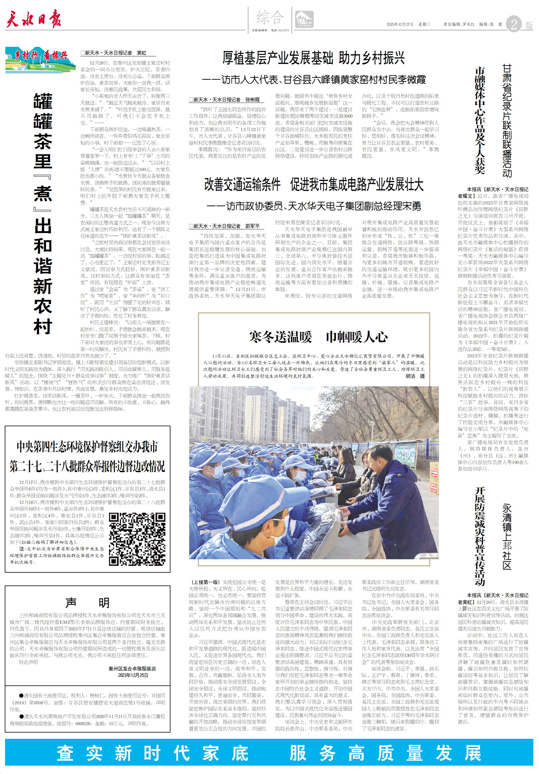 新闻 时间:2023年12月27日 来源:天水日报