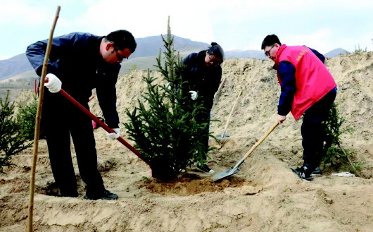 日前,武山县信用联社组织干部职工在榆盘镇盘龙山开展义务植树活动,以实际行动彰显践行绿色环保理念的责任担当,充分展示农信员工扎根本土、植绿护绿的精神风貌,增强大家关心和参与生态环境保护、建设美好家园的环保意识。 骆菁 摄