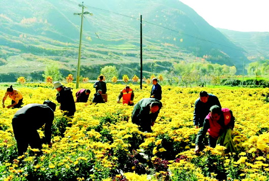 “我们村是高寒山区,以前种传统农作物,收成不好,收入也不高,现在种金丝皇菊,有政府支持,收益好多了。”正在采摘金丝黄菊的村民赵二娃说。
