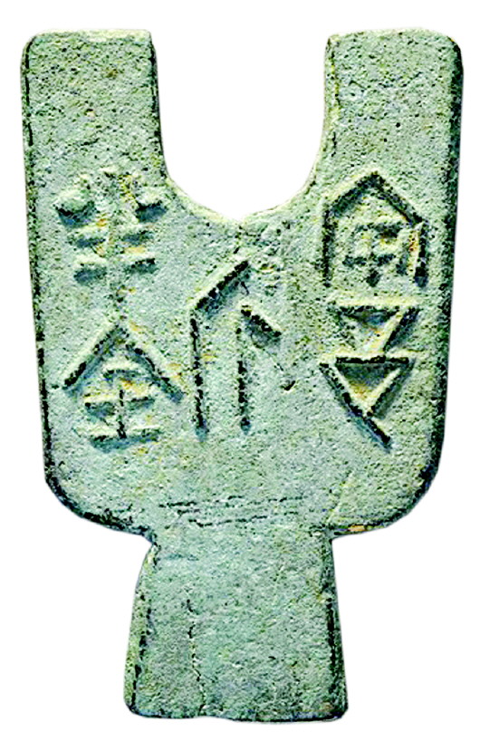 布币是先秦货币中流传较长的一个品类,起于春秋而盛行于战国。铸币的地区,最初是周朝的京畿之地,春秋时期是秦和三晋地区,战国时期主要指魏、赵、韩、燕等国。最初的币形,保留着生产工具的模样,形体较大,上端有銎,中空,称为“空首布”。到了春秋晚期和战国前期,空首布的銎首开始变得扁平,与前身连成一平片,币身也有所缩小,称为“平首布”。不仅如此,随着流通范围的扩大,布币的形制种类也日渐复杂。除了币首分为空首、平首外,币肩有平肩、耸肩、斜肩、圆肩几种。币足形制则更多,有尖足、圆足、方足等。