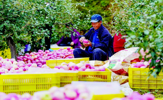 深秋时节,秦安县千户镇的山间果园里一派丰收盛景。