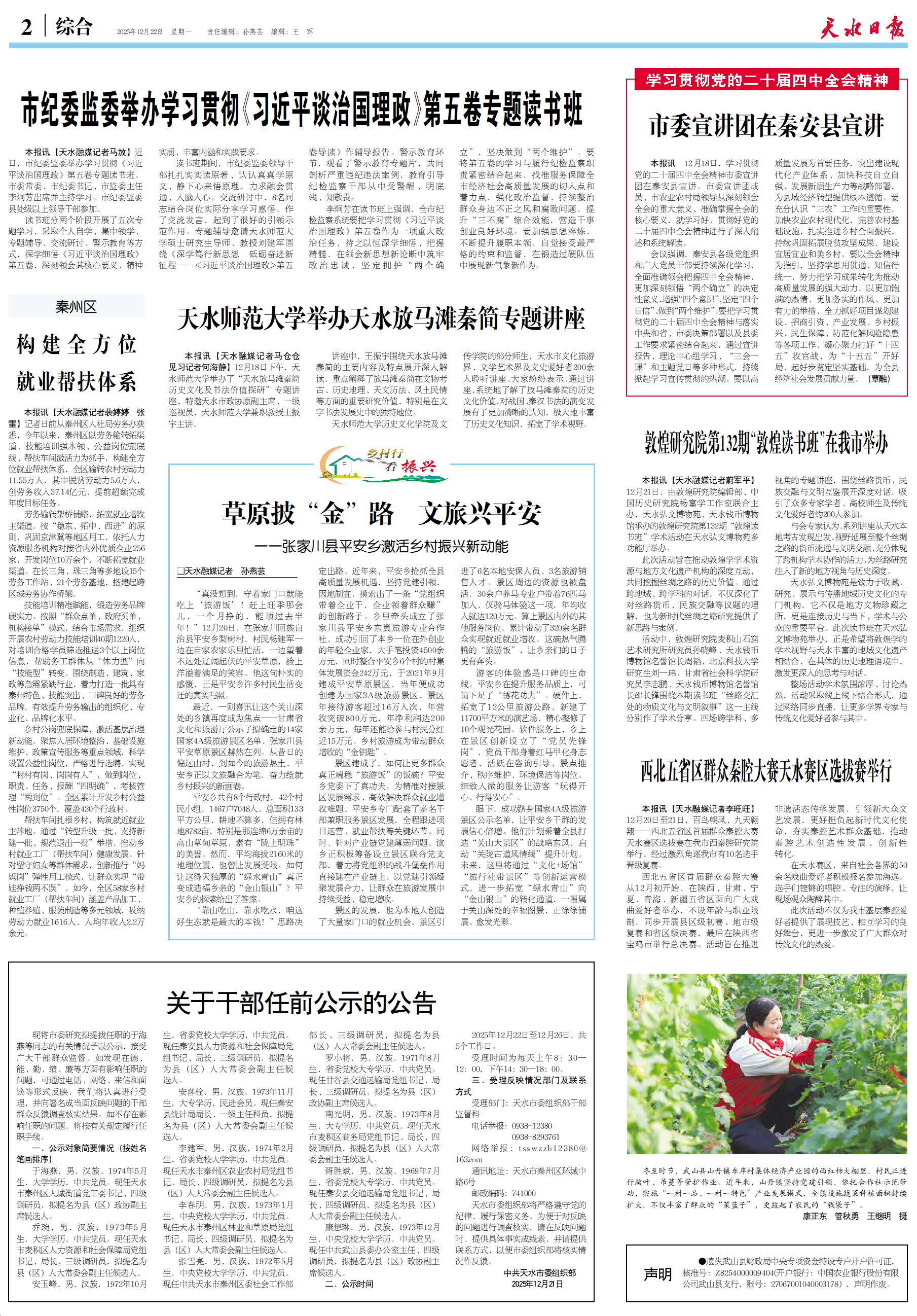 新闻 时间:2025年12月22日 来源:天水日报
