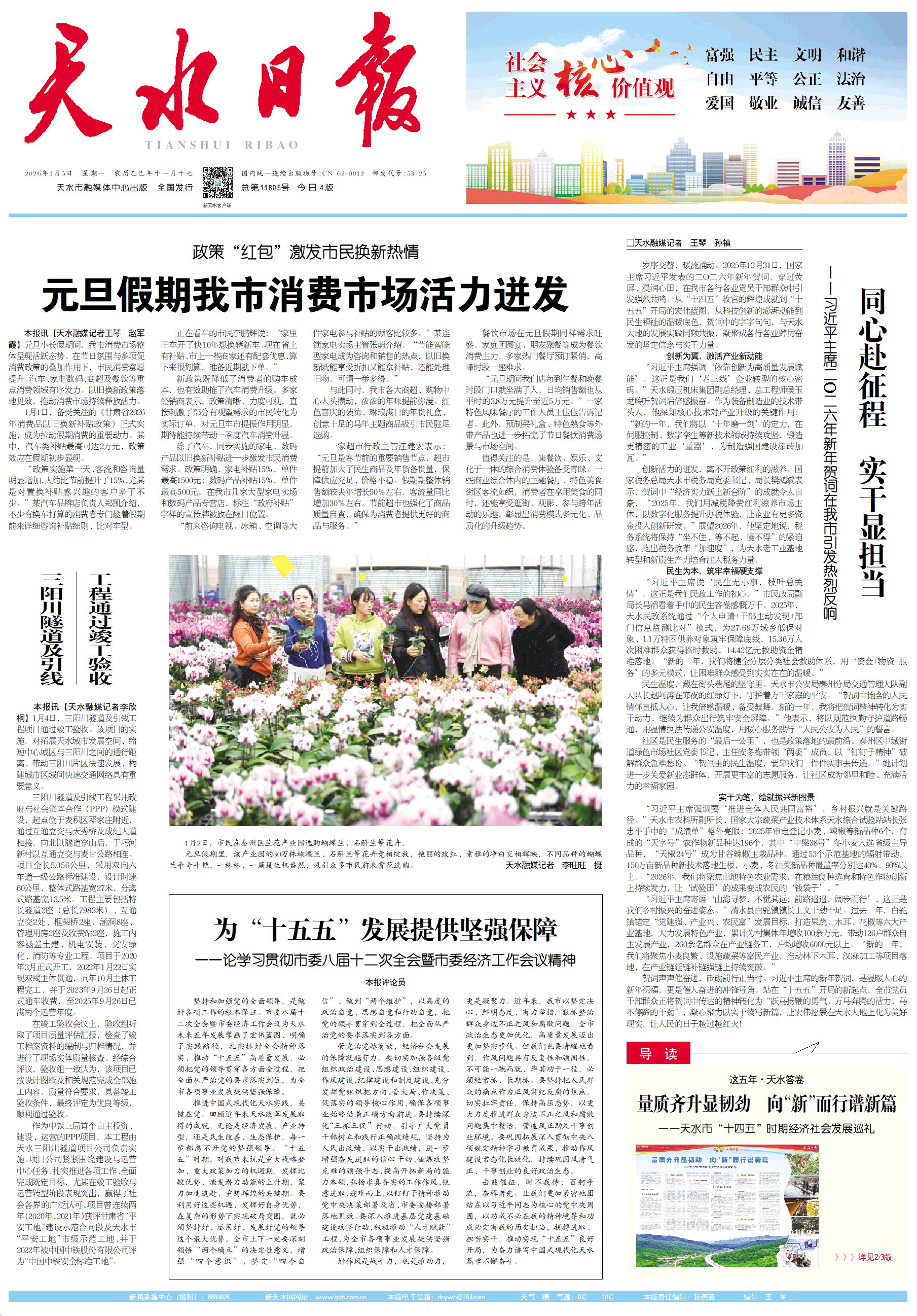 本报讯【天水融媒记者李欣桐】1月4日,三阳川隧道及引线工程项目通过竣工验收。该项目的实施,对拓展天水城市发展空间、缩短中心城区与三阳川之间的通行距离、带动三阳川片区快速发展、构建城市区域间快速交通网络具有重要意义。