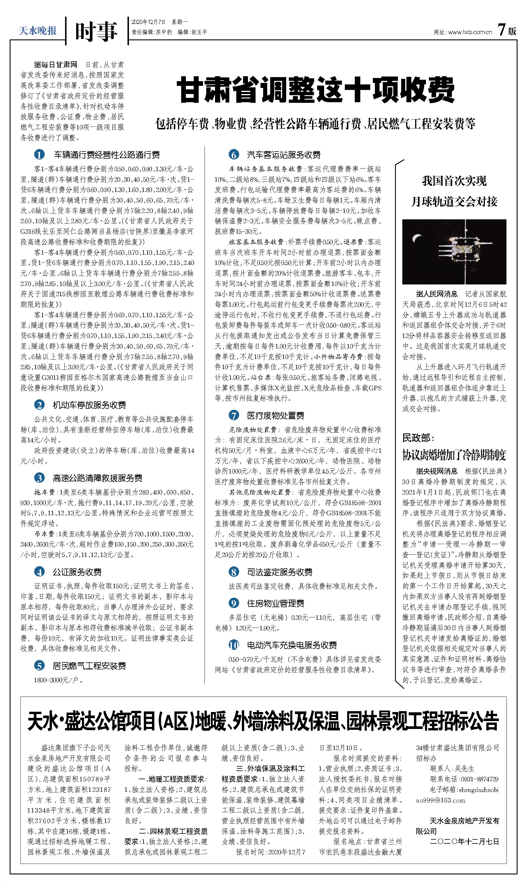 据每日甘肃网 日前,从甘肃省发改委传来好消息,按照国家发展改革委工作部署,省发改委调整修订了《甘肃省政府定价的经营服务性收费目录清单》,针对机动车停放服务收费、公证费、物业费、居民燃气工程安装费等10项一级项目服务收费进行了调整。