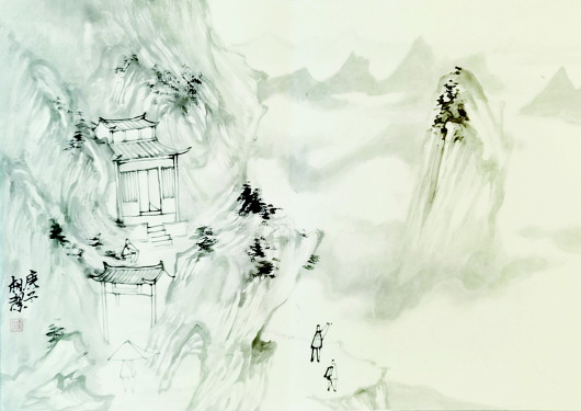 王相洁的毕业作品对他而言是一次极为重要的里程之碑,他首次搁置了已经熟悉、熟练的大山大水的创作,有意识拒绝掉一切程式与套路,只画了光,与云,和不辩形态的似山非山之景。从方法上,对于常见的山水画有拓荒的意义;从思路上,他的努力求新求变,也终于开花结果了,这可以说是一个新时代青年面对艺术创作时最该有的诚恳与虔诚。同时,画面所现之景,也似乎是一个无心却绝佳的隐喻:这位登山者已经来到了某处峰顶,此时已无巨山障目,此时他所见者宽,所及者广,似乎借着来时路和脚下山石,已经攀到了云端之上。而那一束光,正是他心中自由之光,照亮他的前进路,也照亮他的心的底片。