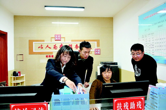 8:30,辛娇娇和社区工作人员准时到岗。她换上职业服装,打开桌前电脑,一天的工作开始了。