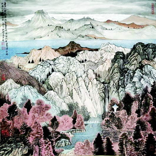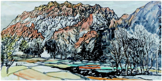 祁连山具有原始、纯真、古朴的山岳自然景观,其地貌山脉,与同属于西部的天山和昆仑山脉相比都有所区别。尤其是沿着祁连山脉一路行走,蓝天、碧水、雪山、冰川、林海交相辉映,各种自然景观应有尽有,非常吸引人。“这也是一直以来馆里艺术探讨的一个方向,我和馆里不少同事都想画这些东西,对此我也曾多次考察过。相比南方,作为甘肃的本土画家,我们更希望表现祁连山,表现甘肃的风土人情和山川风貌。”李博说。