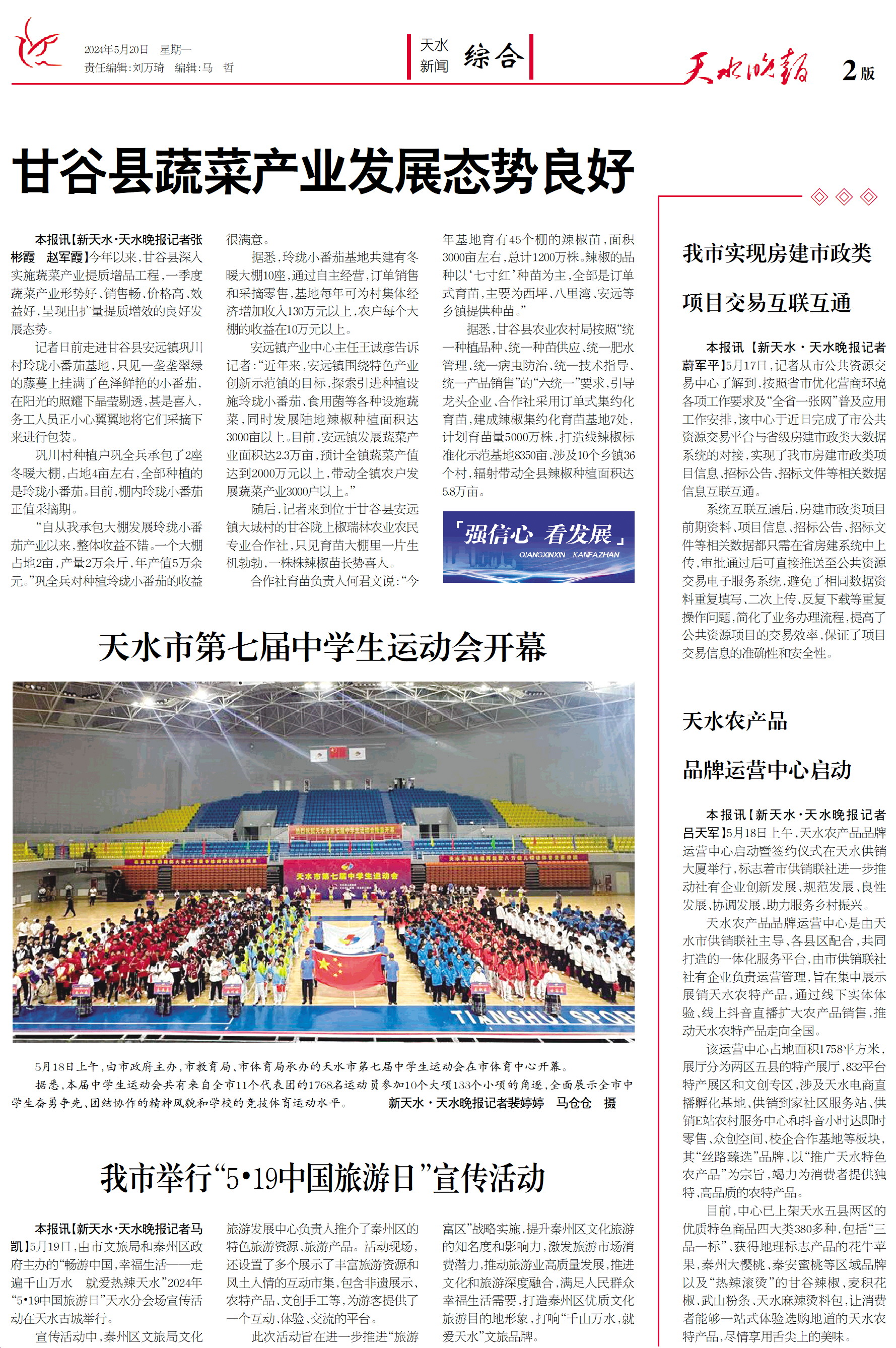 本报讯【新天水·天水晚报记者 吕天军】5月18日上午,天水农产品品牌运营中心启动暨签约仪式在天水供销大厦举行,标志着市供销联社进一步推动社有企业创新发展、规范发展、良性发展、协调发展,助力服务乡村振兴。