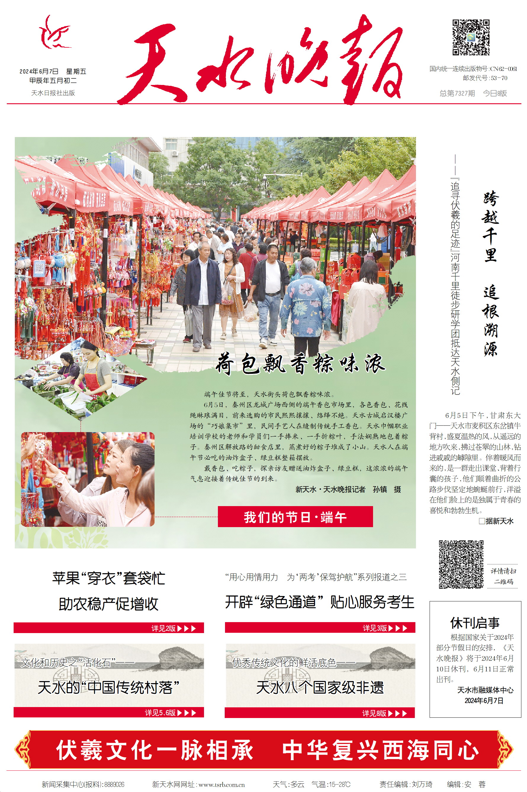 根据国家关于2024年部分节假日的安排,《天水晚报》将于2024年6月10日休刊,6月11日正常出刊。