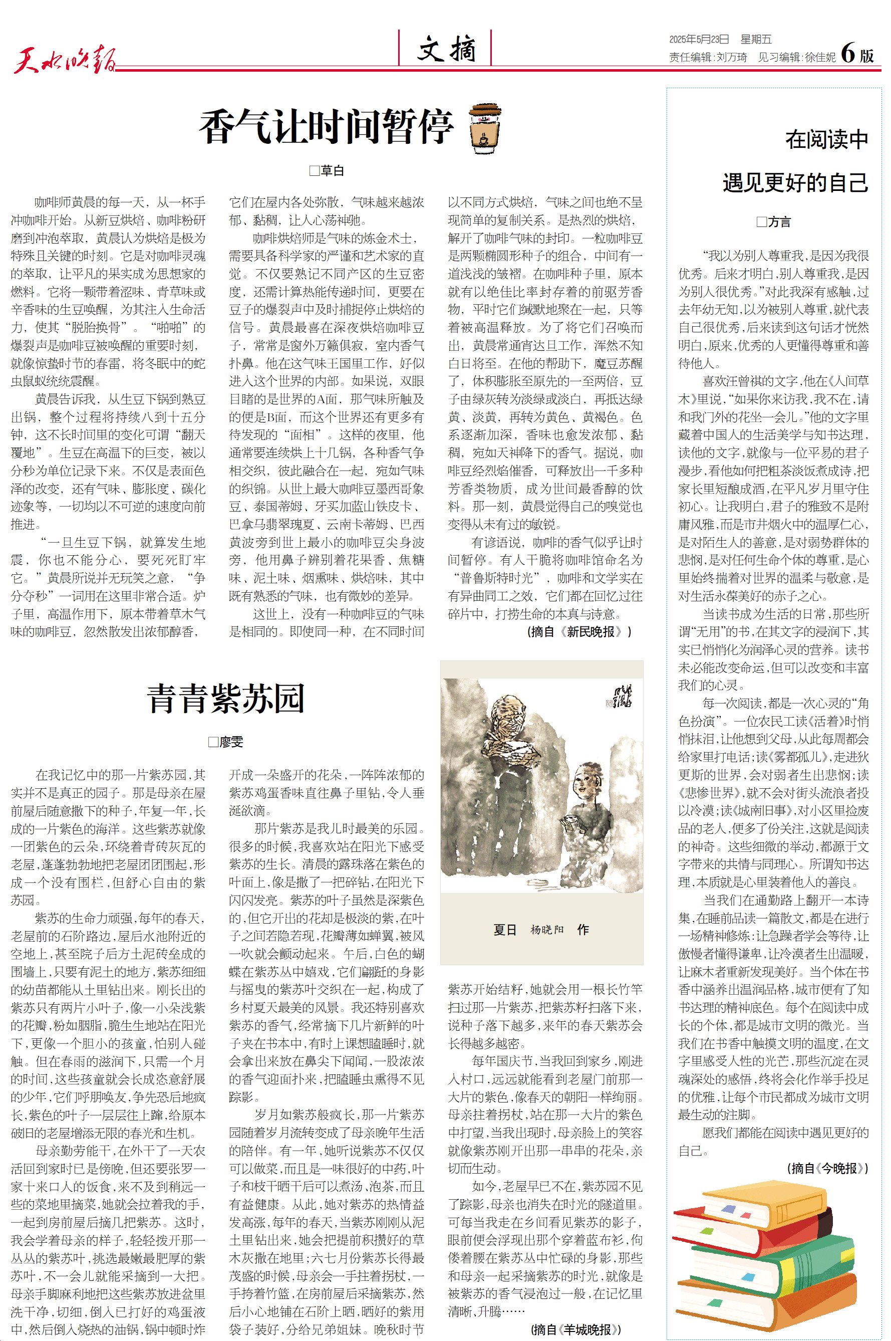这世上,没有一种咖啡豆的气味是相同的。即使同一种,在不同时间以不同方式烘焙,气味之间也绝不呈现简单的复制关系。是热烈的烘焙,解开了咖啡气味的封印。一粒咖啡豆是两颗椭圆形种子的组合,中间有一道浅浅的皱褶。在咖啡种子里,原本就有以绝佳比率封存着的前驱芳香物,平时它们缄默地聚在一起,只等着被高温释放。为了将它们召唤而出,黄晨常通宵达旦工作,浑然不知白日将至。在他的帮助下,魔豆苏醒了,体积膨胀至原先的一至两倍,豆子由绿灰转为淡绿或淡白,再抵达绿黄、淡黄,再转为黄色、黄褐色。色系逐渐加深,香味也愈发浓郁、黏稠,宛如天神降下的香气。据说,咖啡豆经烈焰催香,可释放出一千多种芳香类物质,成为世间最香醇的饮料。那一刻,黄晨觉得自己的嗅觉也变得从未有过的敏锐。