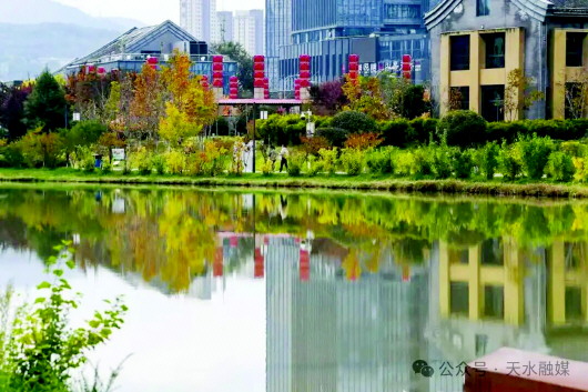 藉河风情线是天水市区的“生态纽带”,初冬时节依旧活力满满。这里流水潺潺,澄澈的河水倒映着岸边的树木,枝叶虽染霜色,却更显苍劲,与波光粼粼的水面构成一幅“流动的画卷”。午后,沿着步道缓缓漫步,或在亲水平台驻足远眺,看河水悠悠流淌,听风吹过枝叶的轻响,偶尔能瞥见水鸟低空掠过,泛起圈圈涟漪。远处的城市建筑与眼前的自然景致融为一体,既有自然之灵秀,又有烟火之温暖。