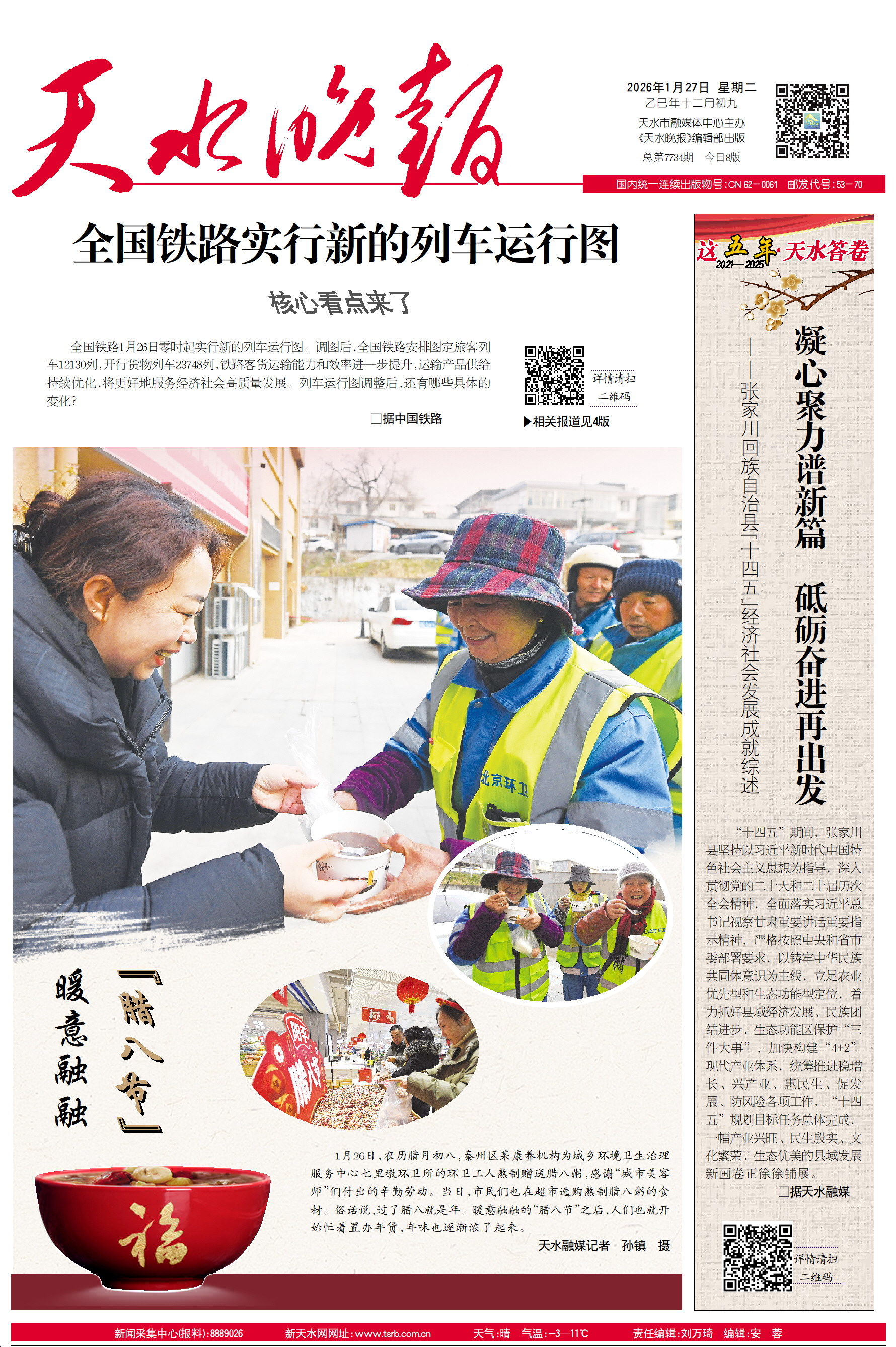 1月26日,农历腊月初八,秦州区某康养机构为城乡环境卫生治理服务中心七里墩环卫所的环卫工人熬制赠送腊八粥,感谢“城市美容师”们付出的辛勤劳动。当日,市民们也在超市选购熬制腊八粥的食材。俗话说,过了腊八就是年。暖意融融的“腊八节”之后,人们也就开始忙着置办年货,年味也逐渐浓了起来。 天水融媒记者 孙镇 摄